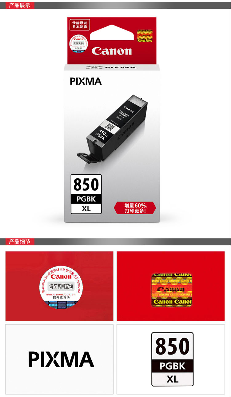 佳能(Canon) PGI-850XL 高容黑色墨盒(适用MX928、MG6400、iP7280、iX6880)