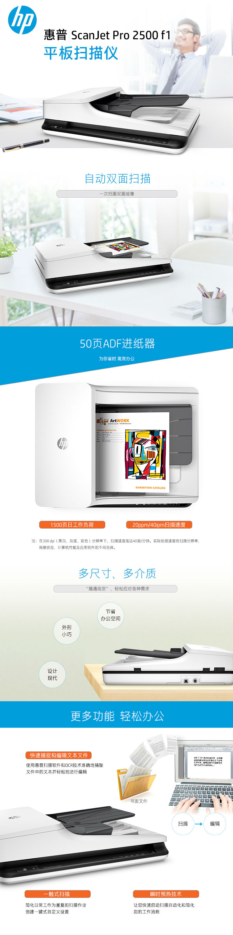 首页 > 办公设备 > 扫描仪 > 惠普(HP) ScanJet Pro 2500 F1 平板扫描仪