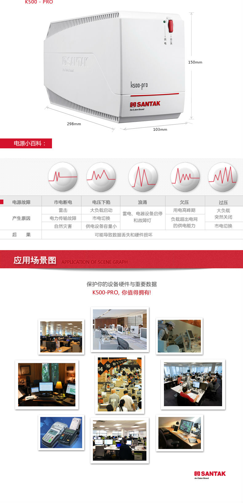 首页 > 办公设备 > 不间断电源 > 山特(SANTAK) UPS 不间断电源K500/300W 延时约20分钟后备式