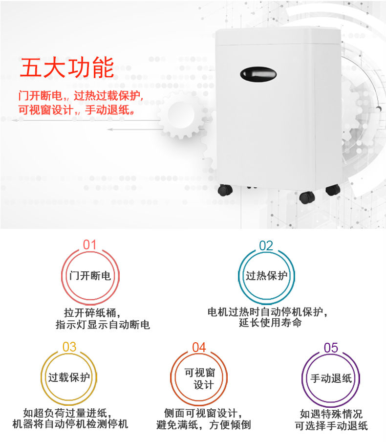 • 包装清单:碎纸机*1 说明书*1 质保卡*1
