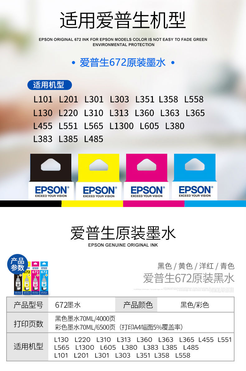 - 包装清单:主机 x1 电源线 x1 数据线 x1 保修卡 x1 首先阅读 x1 驱动盘 x1 标配黑色墨水 x1 标配洋红色墨水 x1 标配黄色墨水 x1 标配青色墨水 x1
