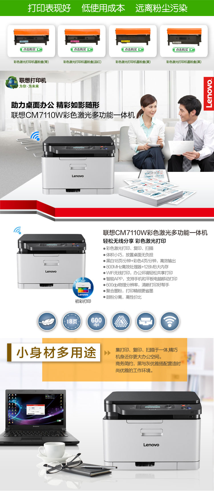 首页 > 办公设备 > 多功能一体机 > 联想/Lenovo Color Laser MFP CM7110W 彩色多功能一体机