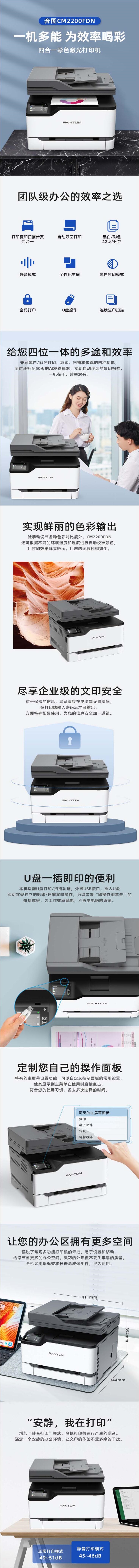 奔图/PANTUM CM2200FDN 彩色多功能四合一激光打印机多功能一体机