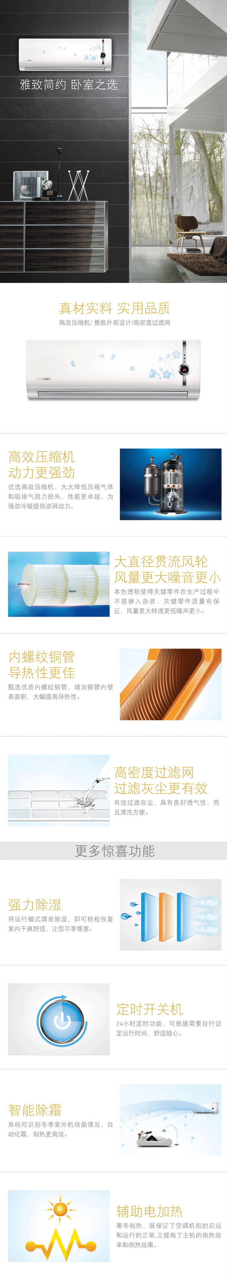 - 包装清单:室内机*1; 排水管*1; 挂墙板*1; 遥控器*1及2节电池*1;螺钉套件*1; 护圈*1;说明书*1;保修卡*1; 室外机*1; 连机管*1