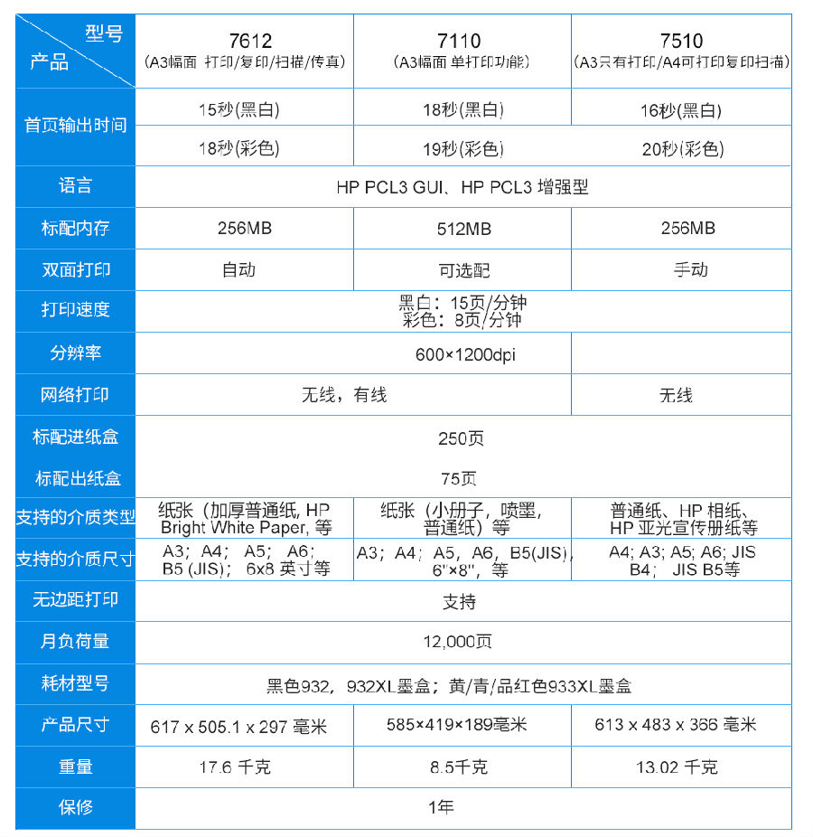 • 包装清单:主机x1;惠普原装黑色启动碳粉x1;惠普原装激光成像鼓x1;打印机文档和软件光盘x1;快速安装指南x1;支持说明x1;保修卡x1;电源线x1;USB数据线x1
