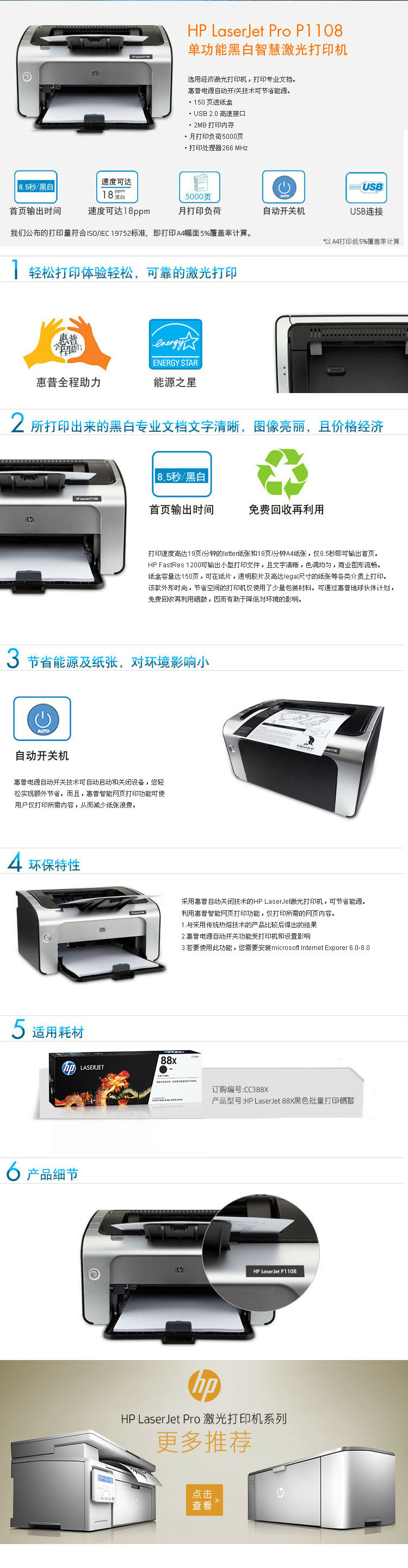 首页 > 办公设备 > 激光打印机 > 惠普(HP)P1108 黑白激光打印机