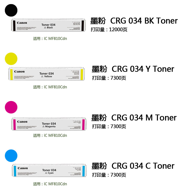 佳能(Canon)CRG-034C青色硒鼓(适用于iC MF810Cdn)