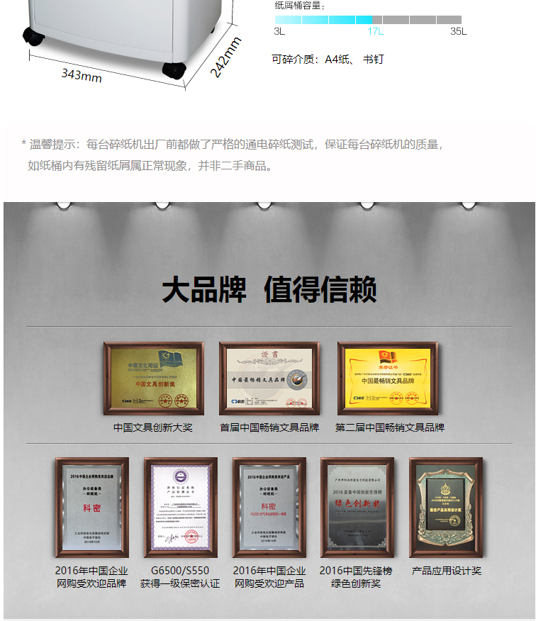 • 包装清单:碎纸机*1、说明书*1、保修卡*1